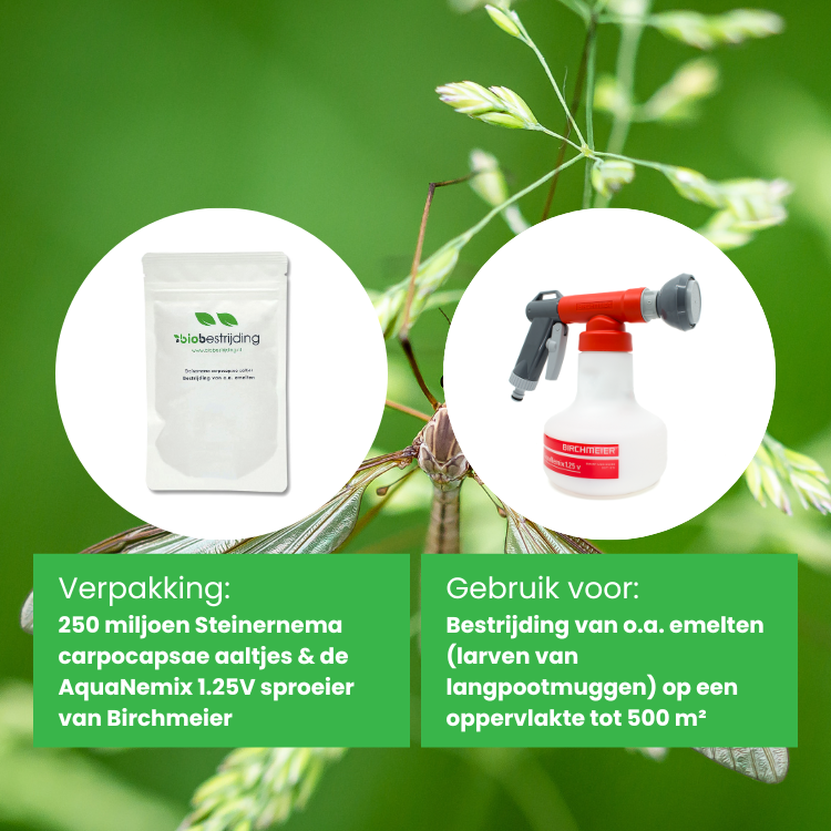 - 250 miljoen Steinernema carpocapsae aaltjes, dit is genoeg voor een oppervlakte van 500 m²