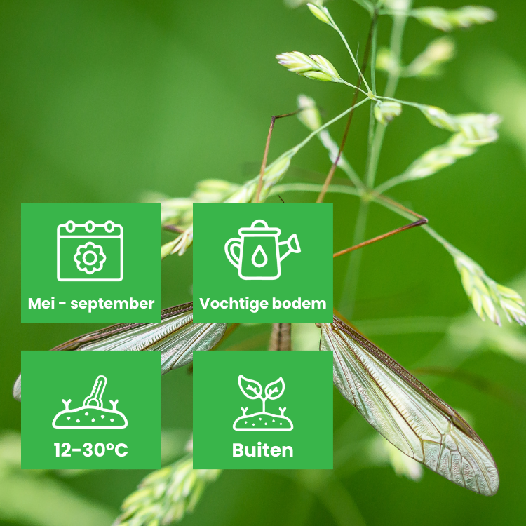 De aaltjes kunt u inzetten bij een bodemtemperatuur tussen 12 en 30 graden. Het is belangrijk dat de aaltjes worden toegepast op een vochtige grond die voor een optimale werking gedurende meerdere weken niet mag uitdrogen. Regelmatig sproeien bij droog weer is dus een must. Tijdens of vlak voor een regenbui is een ideaal moment om de aaltjes uit te zetten. Let op: niet uitzetten bij nachtvorst.